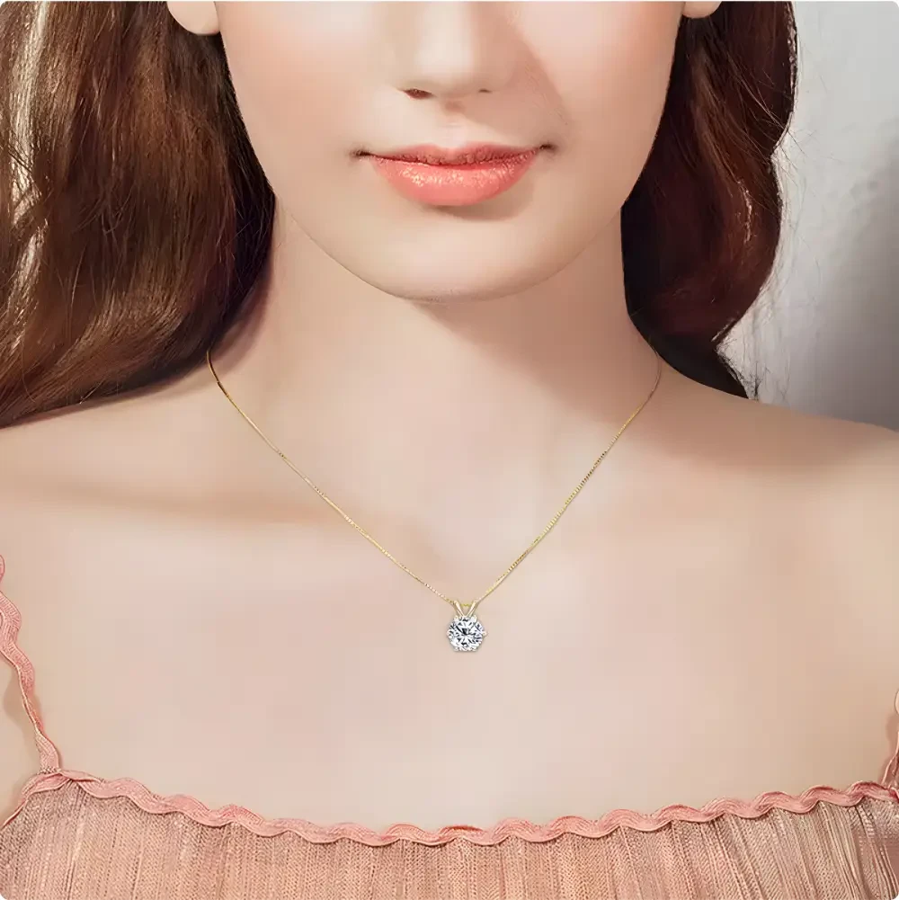 The Moissanite Pendant offers a radiant sparkle that rivals diamonds. This dazzling pendant features a round-cut moissanite stone, expertly set in a sleek sterling silver or gold-plated setting. Perfect for everyday elegance or special occasions, its brilliance makes it a captivating piece of jewelry to complement any outfit.